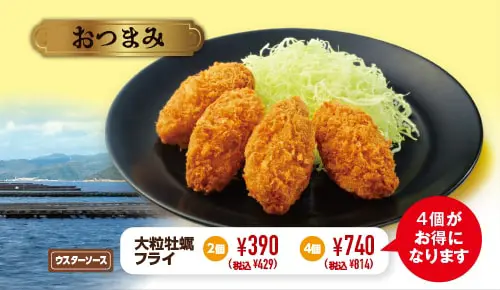 また、お酒のおつまみとしてもオススメな牡蠣フライは単品でもご注文いただけます。