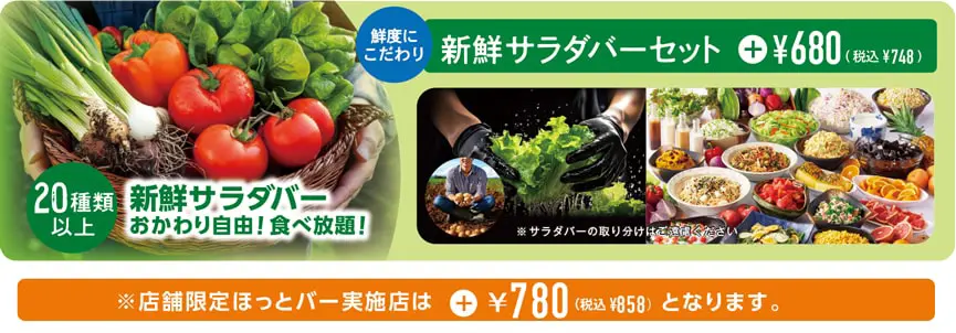 ※「ブロンコセット」「新鮮サラダバーセット」のみのご注文はできません。メインメニューはお一人様1つ、必ずご注文ください。