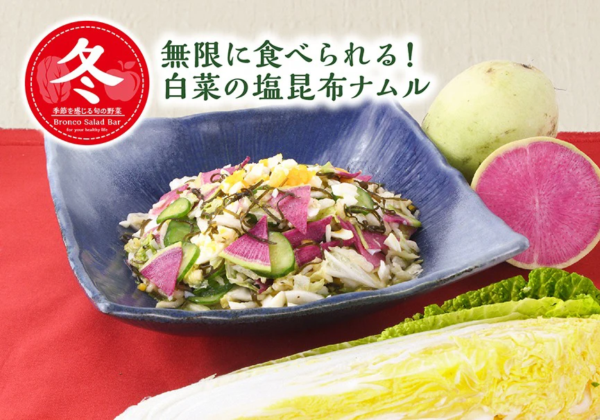 白菜、ほうれん草など冬に旬を迎える野菜をふんだんに使用した、ブロンコビリー自慢のオリジナルサラダをお楽しみください。